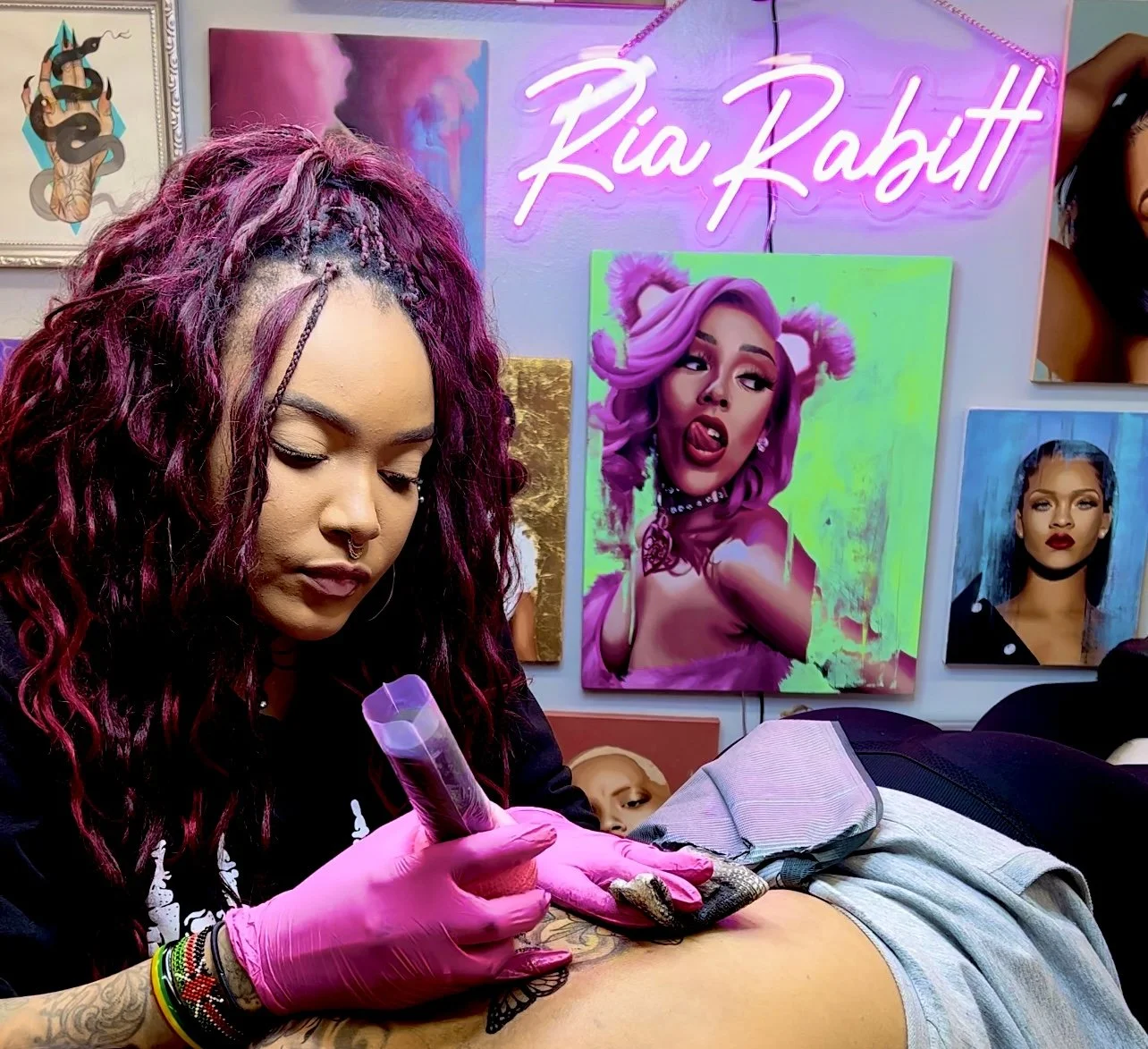 Hey there! I’m Ria Amani, and I’ve been tattooing for over 14 years. With a rich heritage from Trinidad & Tobago and Kenya, I take great pride in my culture, and it inspires much of my creative expression. I’m passionate about delivering tattoos that are not only visually striking but crafted with precision and care. Specializing in bold, bright color work, Neo-traditional, and Neo-realism, I particularly love creating vibrant designs—flowers are some of my favorites to bring to life. Throughout my career, I’ve had the opportunity to tattoo internationally and was featured on Ink Master: Angels. Tattooing is my passion, and I’m constantly pushing myself to grow, evolve, and become a better artist every day.